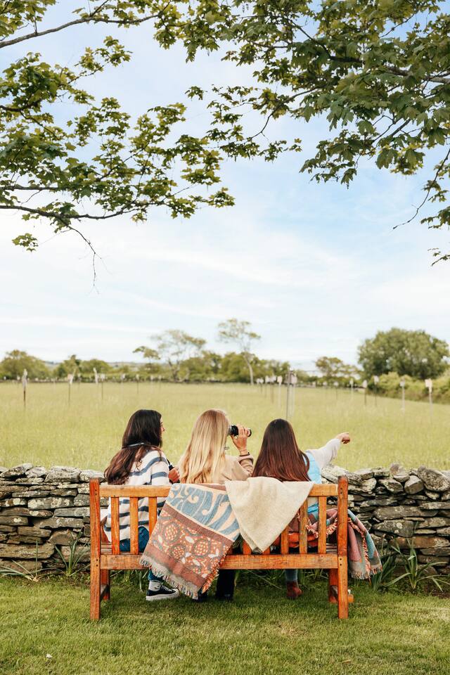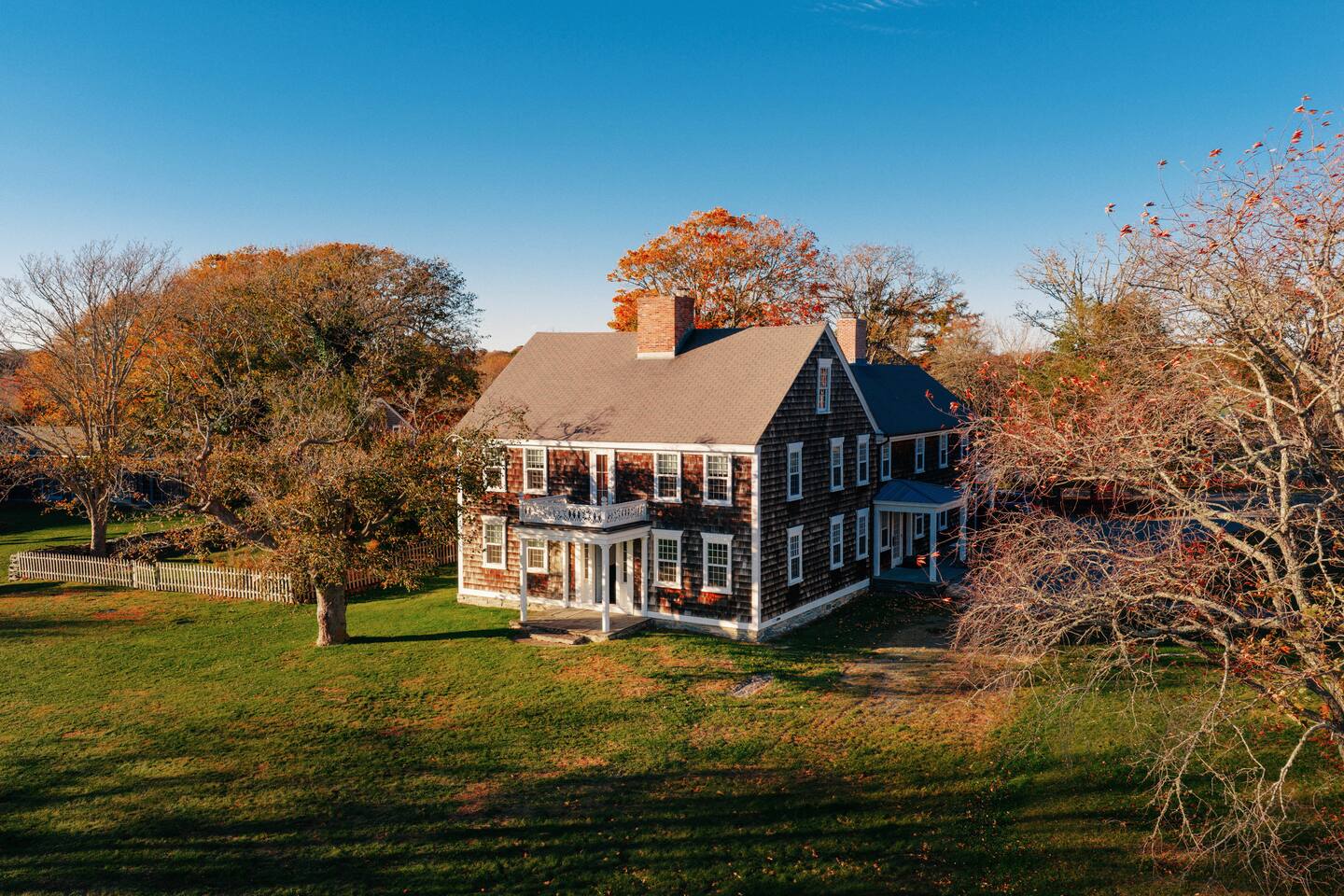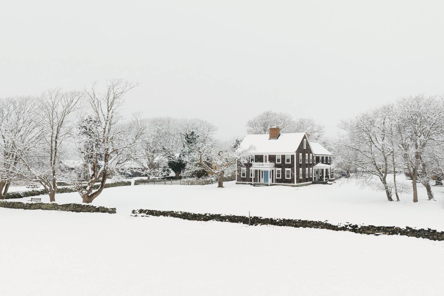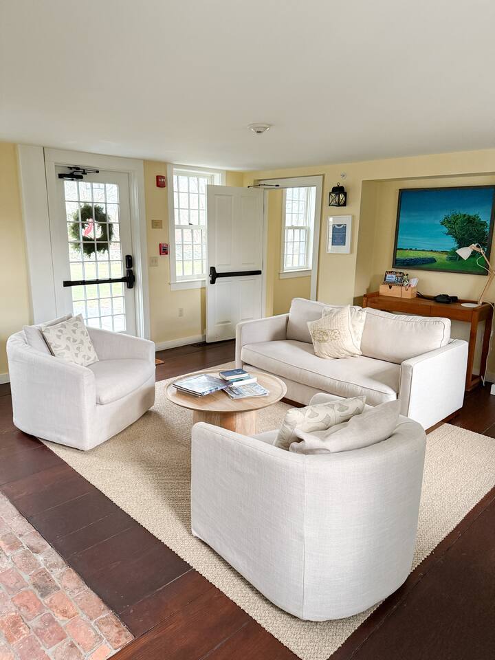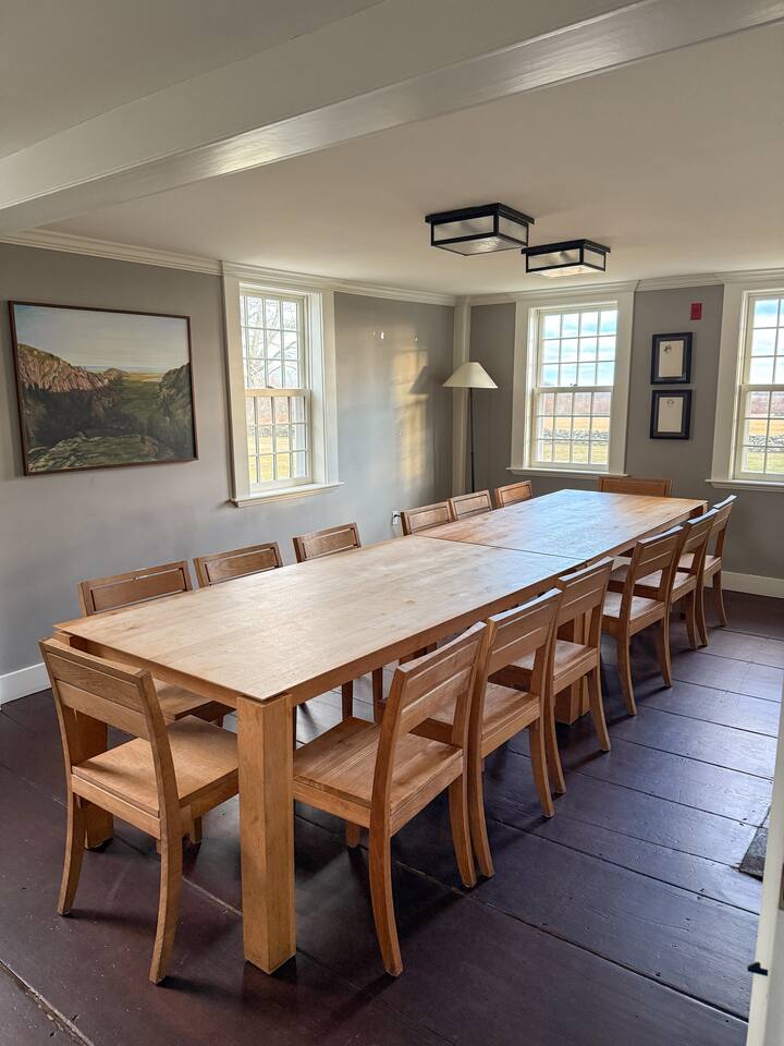 - 6,000 sq ft historic farmhouse on the National Register of Historic Places - Sleeps 14–16 | 6 bedrooms + 7 bathrooms - Configurable beds: 3 rooms w/ king or two twins, 2 fulls, 1 bunk room (sleeps 6) - Ensuite bathrooms in every bedroom (5 showers, 1 full tub) - 3 cozy living rooms + 7 decorative fireplaces - 2 dining areas + well-equipped kitchen - Central AC & heating, linens, WiFi - No TVs – intentionally unplugged - Farmaesthetics bath products & green cleaning supplies - Terrace w/ ocean views and expansive lawn - Optional: midweek cleaning, private chef, NBS bird hikes & educational add-ons - Additional rental agreement required post-booking