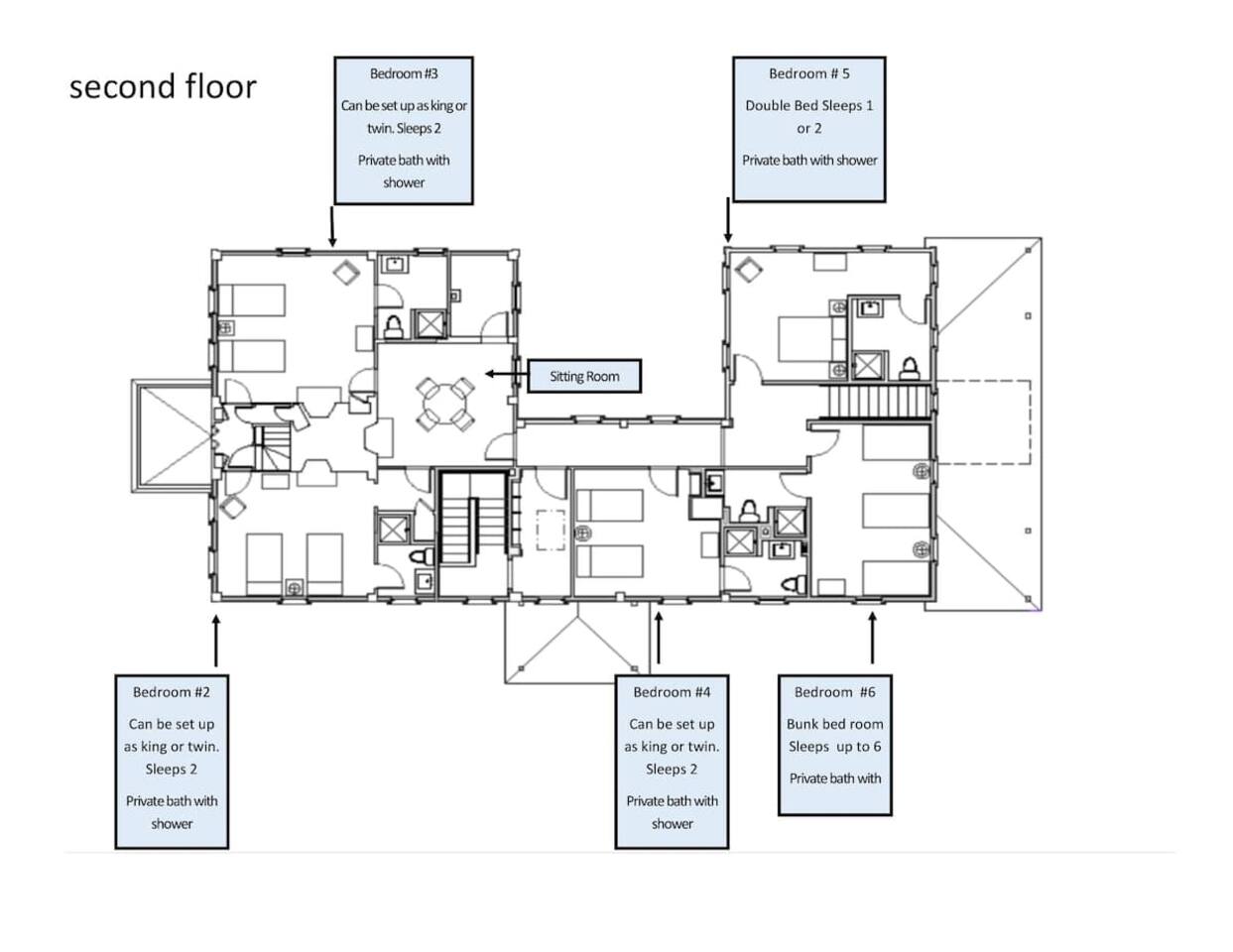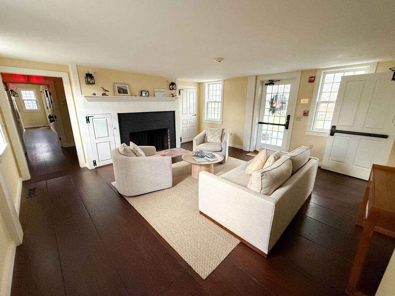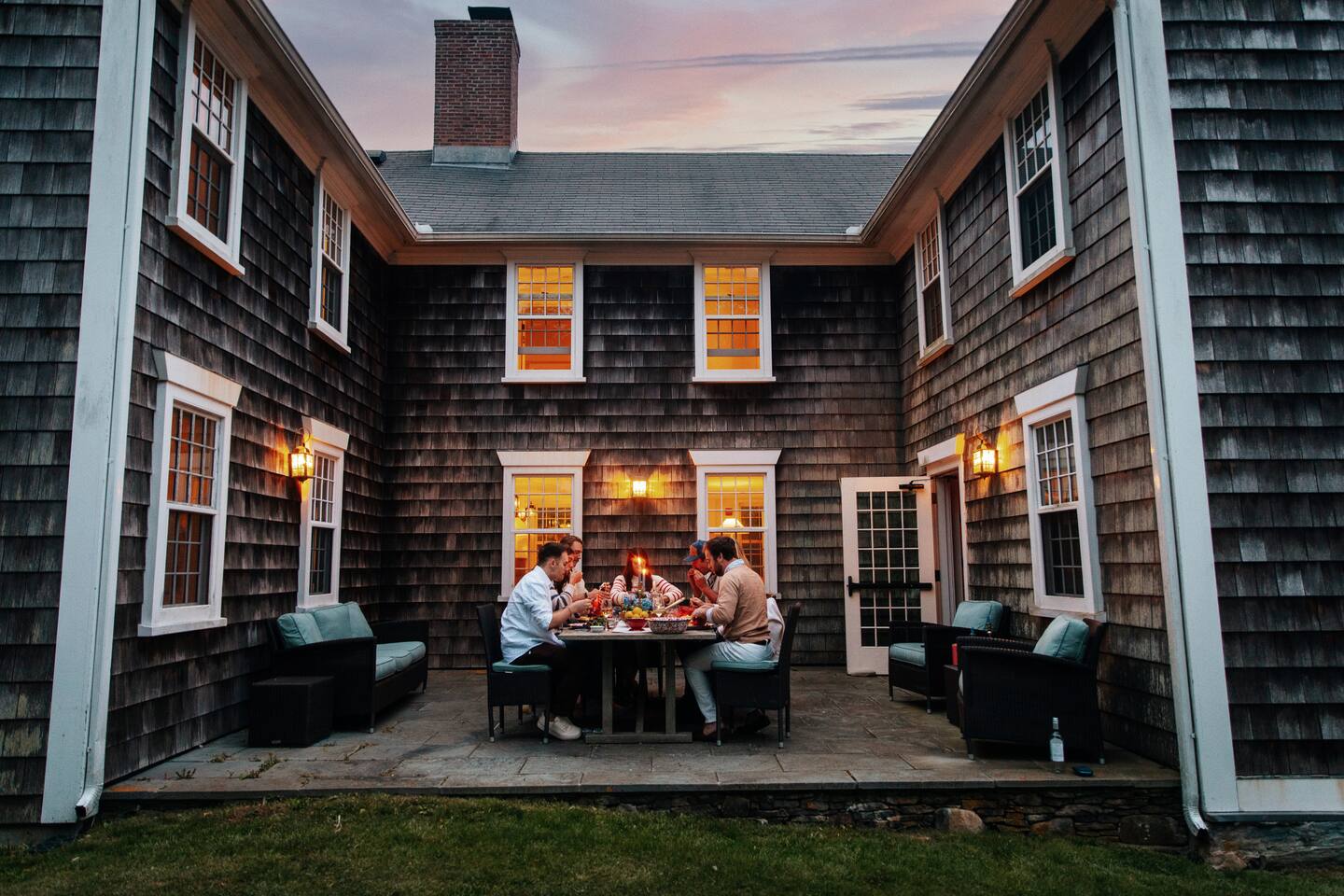 - 6,000 sq ft historic farmhouse on the National Register of Historic Places - Sleeps 14–16 | 6 bedrooms + 7 bathrooms - Configurable beds: 3 rooms w/ king or two twins, 2 fulls, 1 bunk room (sleeps 6) - Ensuite bathrooms in every bedroom (5 showers, 1 full tub) - 3 cozy living rooms + 7 decorative fireplaces - 2 dining areas + well-equipped kitchen - Central AC & heating, linens, WiFi - No TVs – intentionally unplugged - Farmaesthetics bath products & green cleaning supplies - Terrace w/ ocean views and expansive lawn - Optional: midweek cleaning, private chef, NBS bird hikes & educational add-ons - Additional rental agreement required post-booking