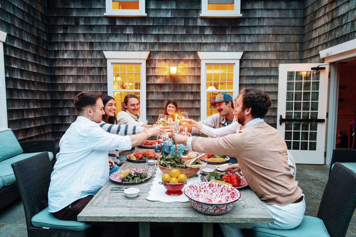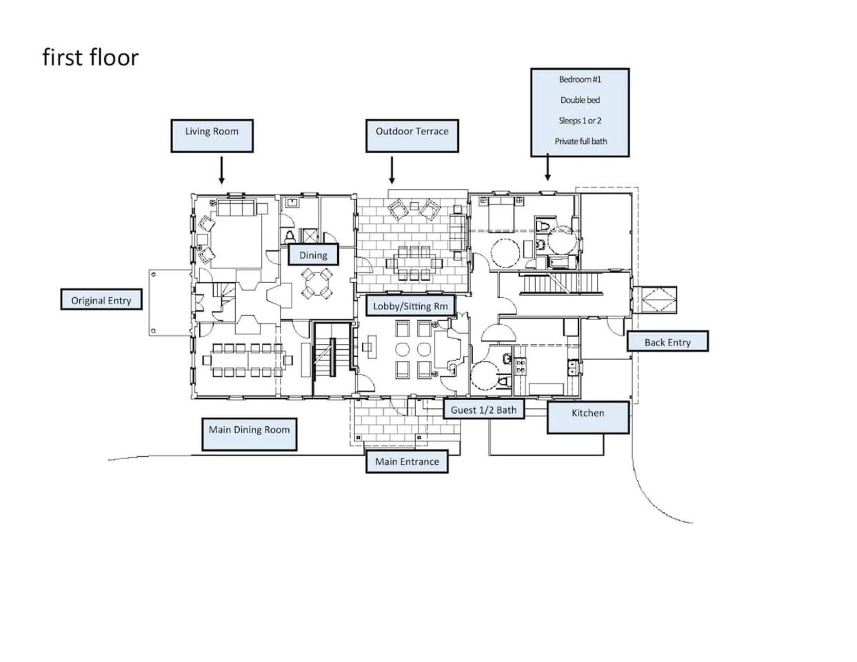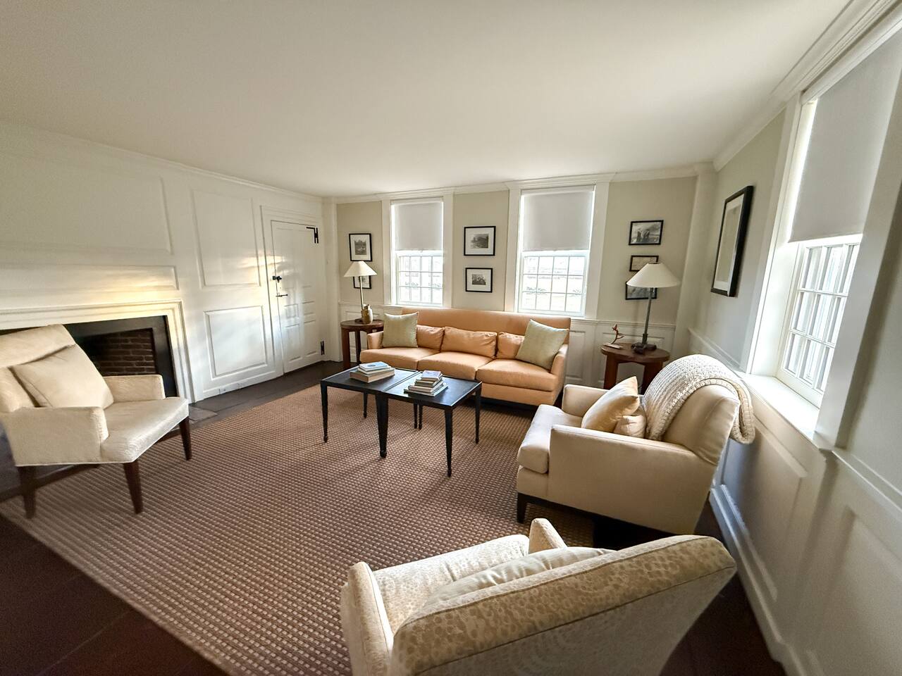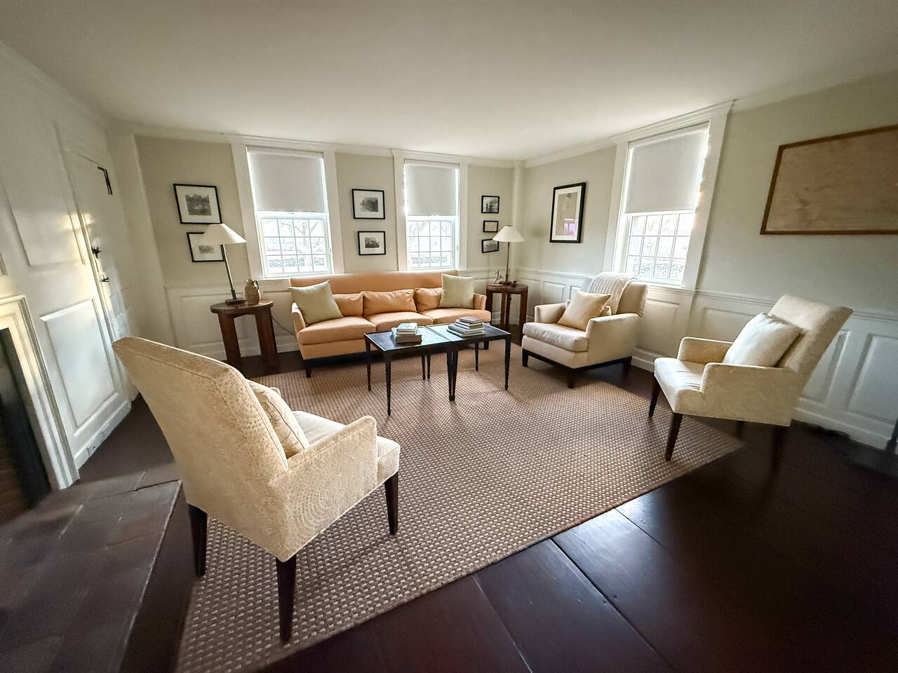- 6,000 sq ft historic farmhouse on the National Register of Historic Places - Sleeps 14–16 | 6 bedrooms + 7 bathrooms - Configurable beds: 3 rooms w/ king or two twins, 2 fulls, 1 bunk room (sleeps 6) - Ensuite bathrooms in every bedroom (5 showers, 1 full tub) - 3 cozy living rooms + 7 decorative fireplaces - 2 dining areas + well-equipped kitchen - Central AC & heating, linens, WiFi - No TVs – intentionally unplugged - Farmaesthetics bath products & green cleaning supplies - Terrace w/ ocean views and expansive lawn - Optional: midweek cleaning, private chef, NBS bird hikes & educational add-ons - Additional rental agreement required post-booking